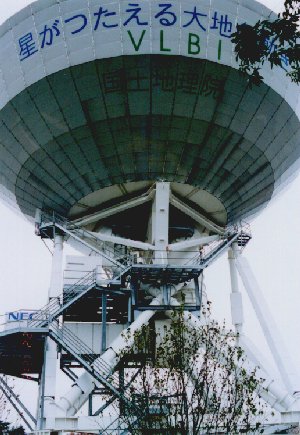 VLBI(超長基線干渉計)パラボラアンテナは、数十億光年の彼方のクェーサーの電波を観測し、 地上の2点間の距離を正確に測定します。これを使って地球のプレート運動をキャッチすることができます。 つくばにあるVLBIパラボラアンテナは直径32mです。