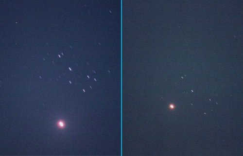 左:2004年4月2日20時10分 露出15秒;右:4月3日19時31分 露出8秒