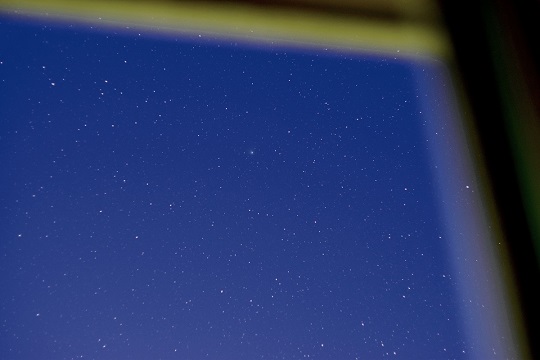 彗星っぽく写っていません。窓枠右端あたりでいちばん明るい星は、北極星です。