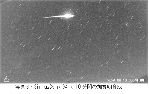 は劣りますが、流星像は引けをとらないくらいはっきり撮れます。何よりも撮影後の処理で流星写真が完成できるのはうれしい限りです。